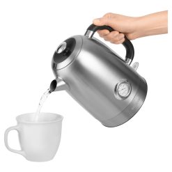 اندازهگیری دما: کتری مدل 1799SS به دماسنج مجهز است که امکان اندازهگیری دقیق دمای آب را فراهم میآورد. این قابلیت بهویژه برای تهیه نوشیدنیهای خاص که نیاز به دمای معین دارند، مانند چای سبز یا انواع قهوه، بسیار مفید است.